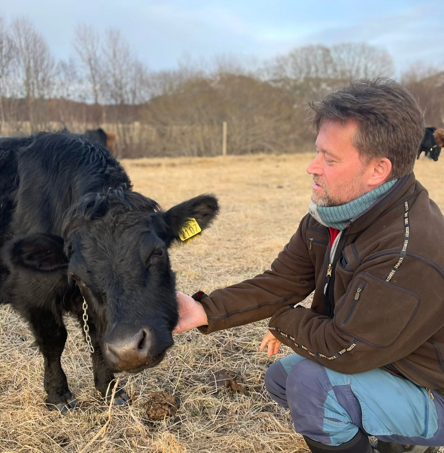 Det er egentlig utrolig hvor mye fôr dyra selv klarer å finne i inn- og utmark, men vi supplerer med rundballer når det er nødvendig. Det er likevel begrenset hvor mye de trenger av tilleggsfôr, og vi har observert gang på gang at kyrne foretrekker å beite fremfor å spise fra en rundball. Noen vil kanskje lure på om dyra får tilstrekkelig næring med en slik driftsform, men det gjør de – noe vi også får jevnlige bekreftelser på fra dyrleger og fra Debio som gjennomfører gårdsbesøk hvert år. Kyrne har riktig vekt, og har i tillegg ren pels og generelt rolig oppførsel. Vi ser også hvor fint dyra har det, noe vi synes er utrolig viktig.